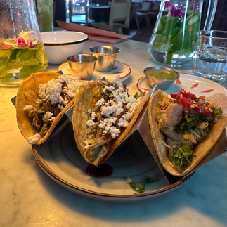 Our adventure led us to the Rotisserie Chicken Street Tacos. While they seemed to have wrestled a bit too long on the grill, the taste was undeniable. The lamb barbacoa? Now that’s a tango of flavors that’d make your taste buds jive. A sip of tap water, kissed with mint, cucumber, and hibiscus, was refreshing. And ah, the pièce de résistance: the squash blossom quesadilla. Melted to perfection, with a crisp that sang of golden sunsets. The chorizo breakfast taco? A passionate affair, if only it didn’t crumble under the embrace.